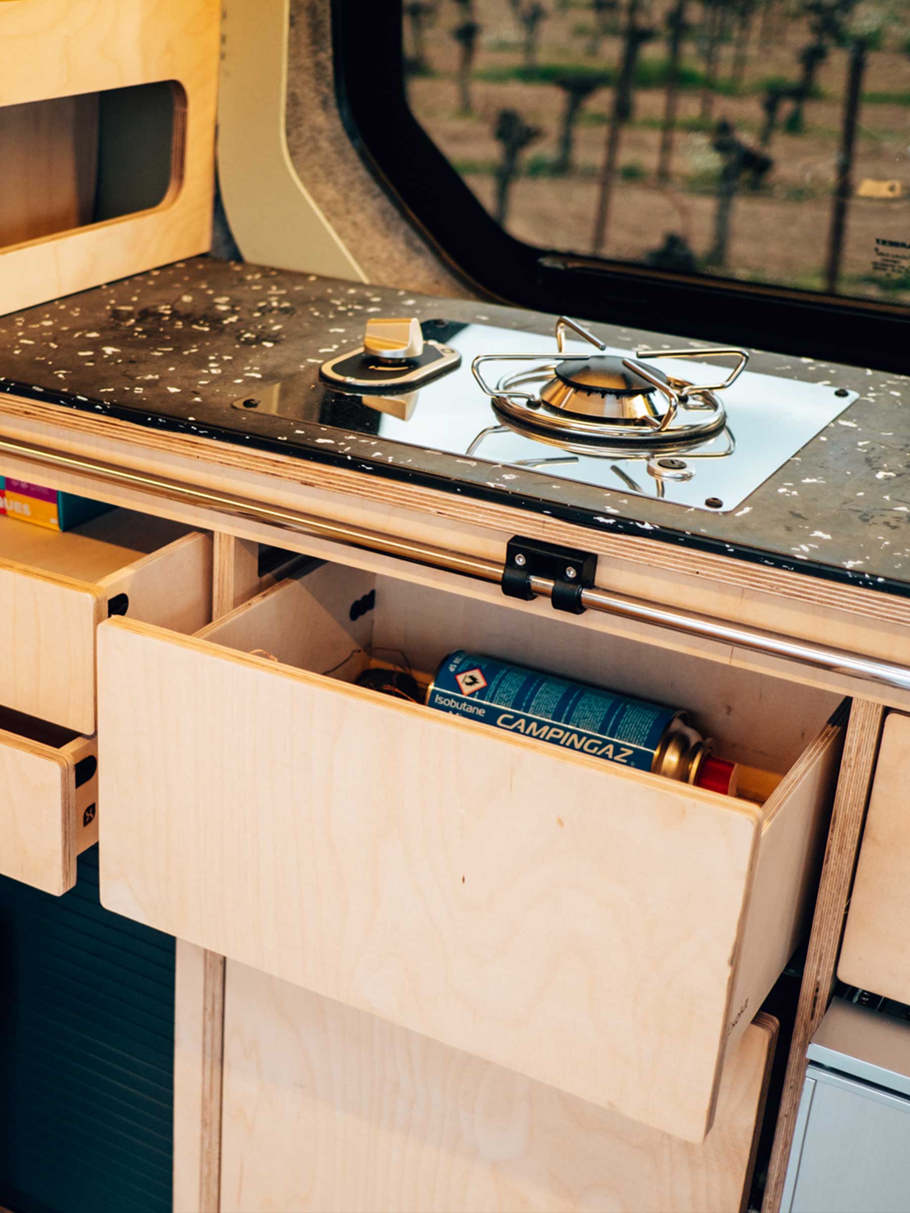 Grâce à ces équipements, le couple peut cuisiner facilement lors de ses voyages, en toute sécurité.