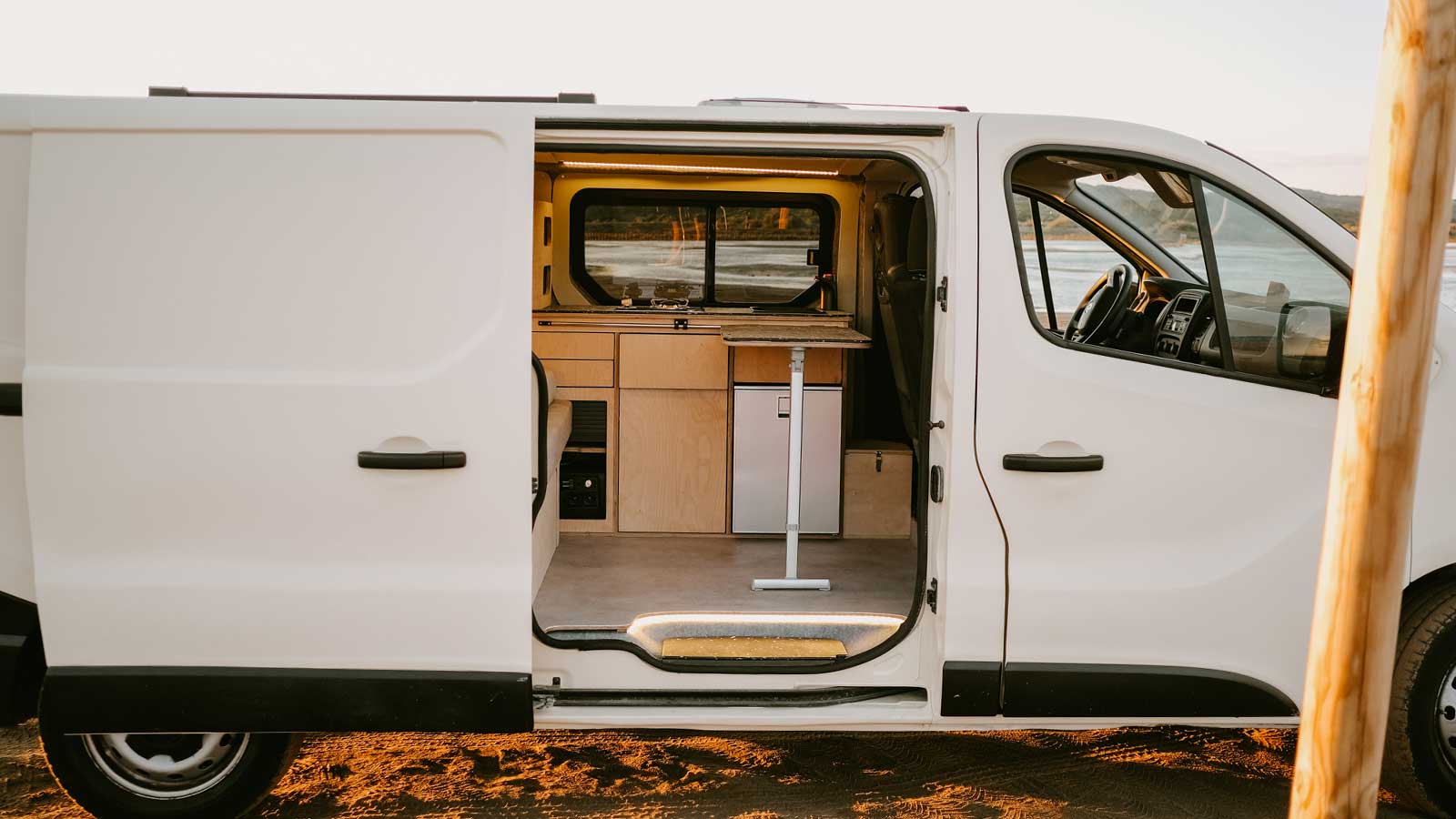 La touche finale apportée par Fornomad réside dans l’intégration de bandes LED discrètes, à la fois au niveau de la marche de la porte latérale et au plafond. Résultat : une ambiance chaleureuse et moderne, idéale aussi bien pour un dîner en bord de plage que pour une soirée cocooning à l’intérieur.